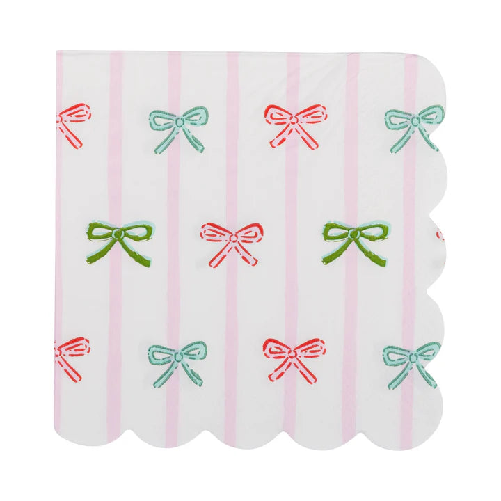 Bow Stripes Scalloped Cocktail Napkins