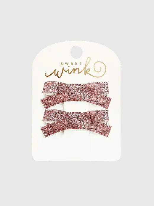 Pink Glitter Bow Clip Set